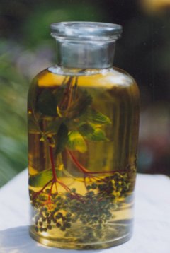 das aus den Kernen der Holunderbeeren gewonnen wird. Jede Beere enthält drei Kerne.