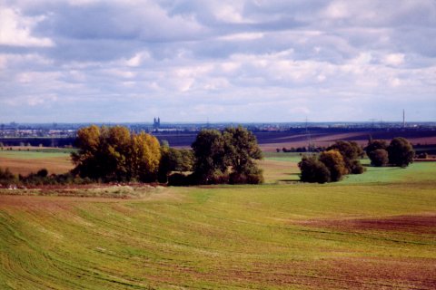 Blick vom Rand der Hohen Börde auf die Stadt Magdeburg