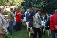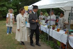 Ursula Duchrow zeigte ihren Gästen im Holundergarten, wie sie ihren Holunderblüten-Salbei-Likör zubereitet.