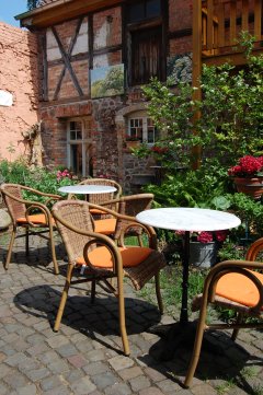 Zur Belohnung gab es im Holundergarten Holunderblüten-Quittentorte mit frischgebrühtem
