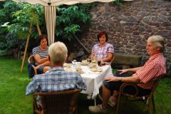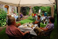 Bei heißem Holunderblütentee plauderten sie mit Ursula E. Duchrow und Heinz-Werner Buhr über Küche,